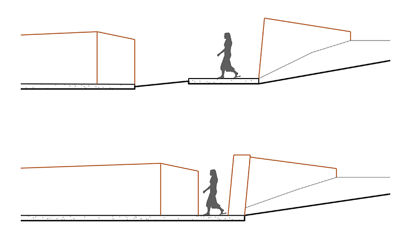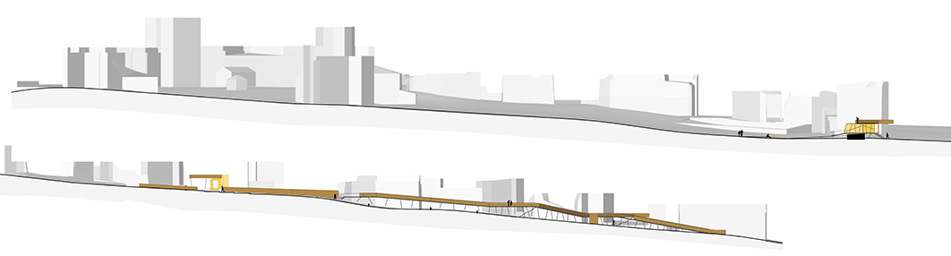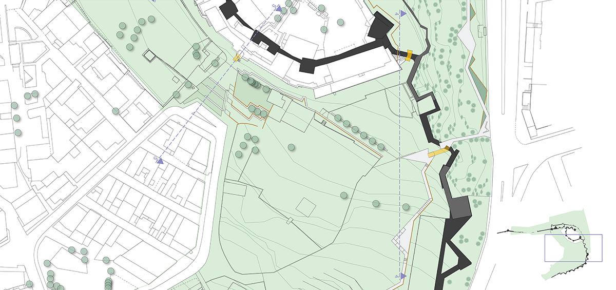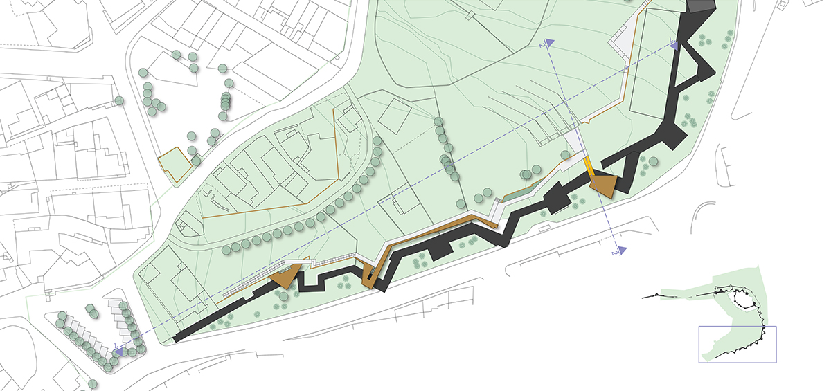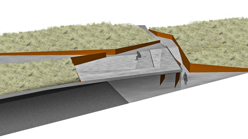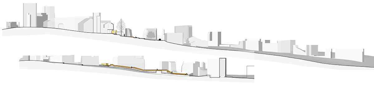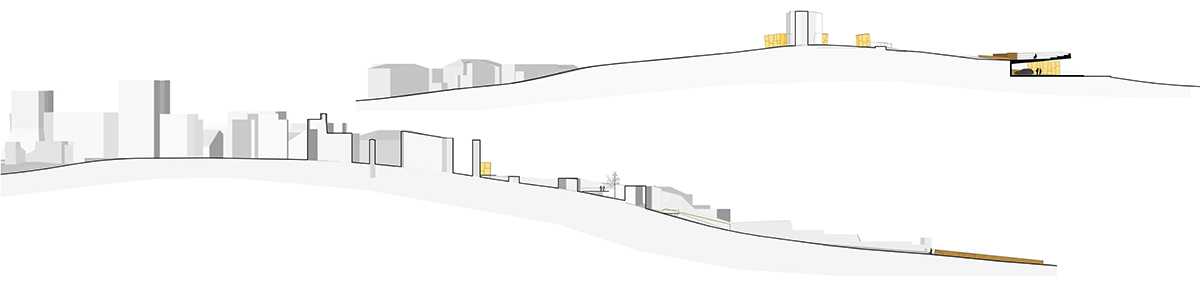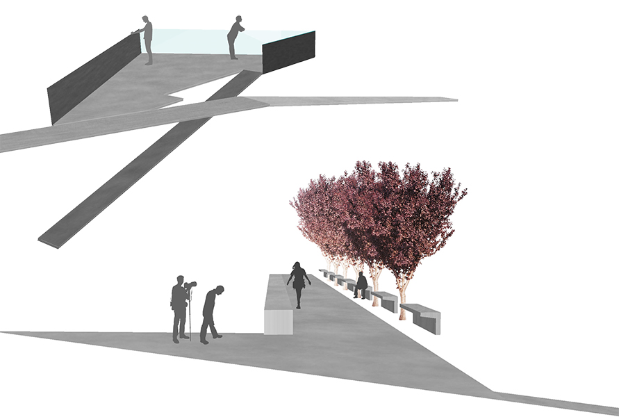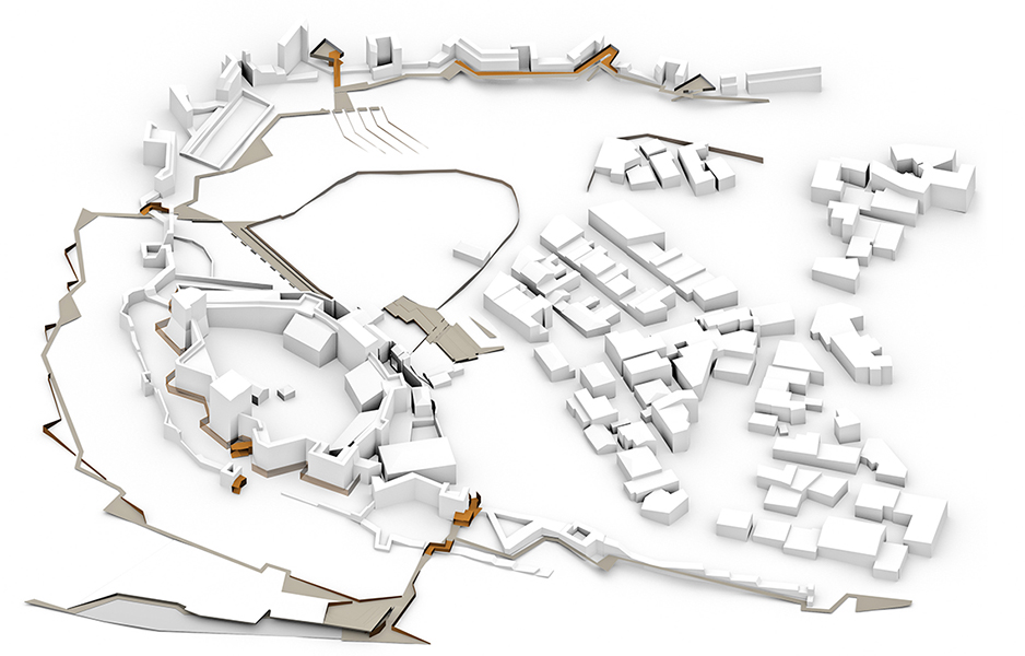 The design was based on the desire of interactivity with the monumental character of Eptapyrgio with a minimum of interventions on site. The solution is a circular pathway, called the necklace, that leads the pedestrian around Eptapyrgio and its walls. Going in and out of the exterior walls, the pathway connects the ancient prison with its surroundings. The interest points are highlighted with plateaus or balconies offering a view on the city. The construction is made of concrete, corten steel and glass, and is completed by a range of low-height, self-maintained vegetation inspired of the byzantine era flora.