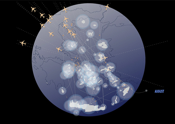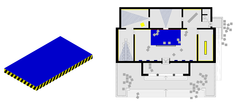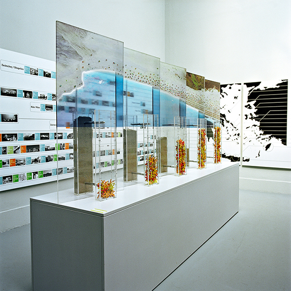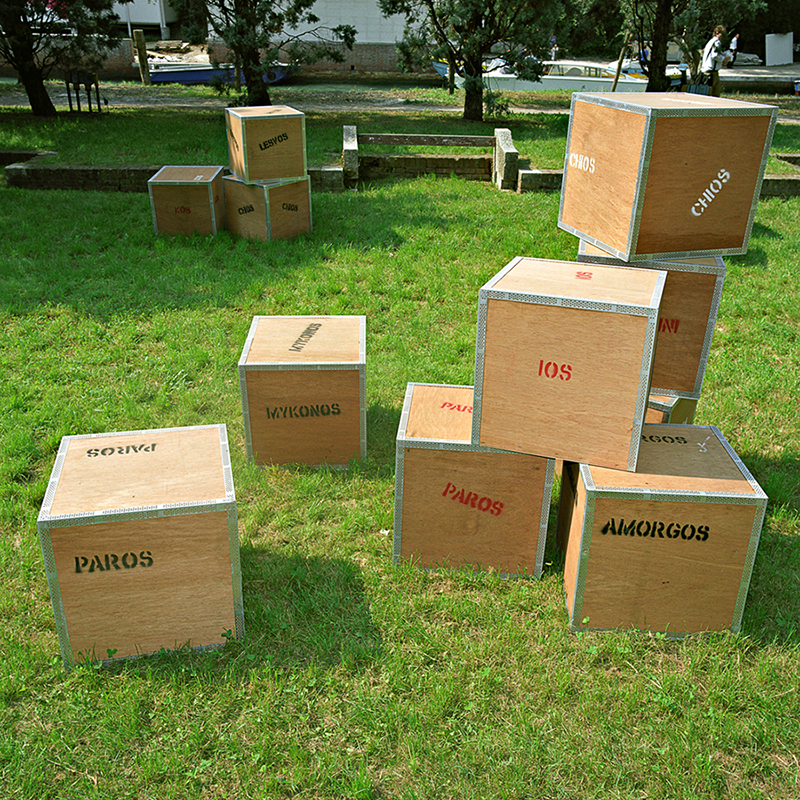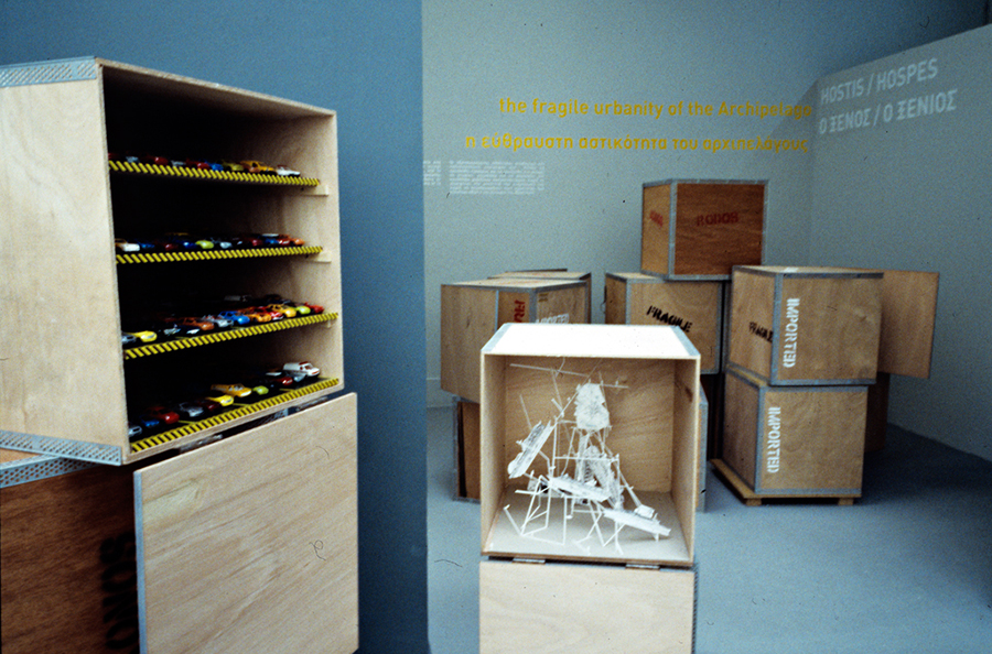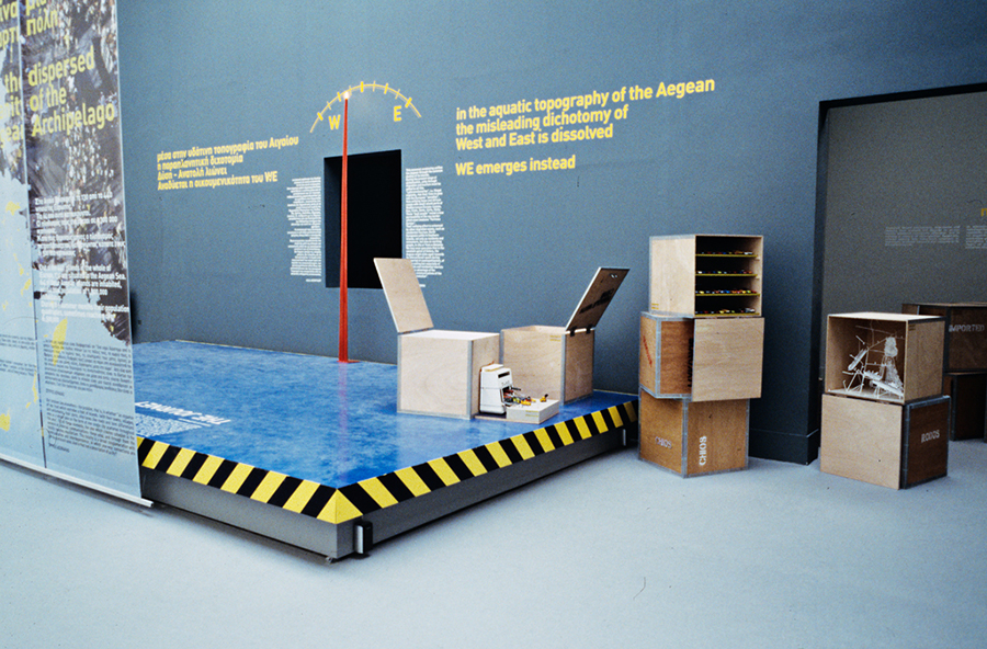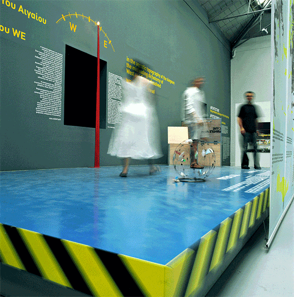 The starting point of our approach to the theme ‘Cities, Architecture and Society’ was the hypothesis that the islands of the Aegean Archipelago function together as a city. This idea comes from the writer Angelos Elephantis, who illustrated a portrait of this city in one of his articles and described the ships’ decks as piazzas where a diverse crowd of people congregates. The main element of the exhibition was a platform that was placed in the centre of the Greek pavilion. Laying on springs, the platform moved when people stepped on it, recreating the sense of imbalance that one has on a ship’s deck sailing through the archipelago. Just as the ships’ decks encourage the communication among passengers, the platform also encourages the mingling of the diverse crowd of the Biennale visitors, resulting to a game in which many people could participate experiencing a pleasant feeling.